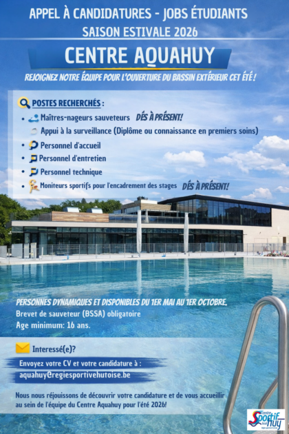 ☀️ Appel à candidatures – Jobs étudiants – Saison estivale 2026 🏊 Centre Aquahuy