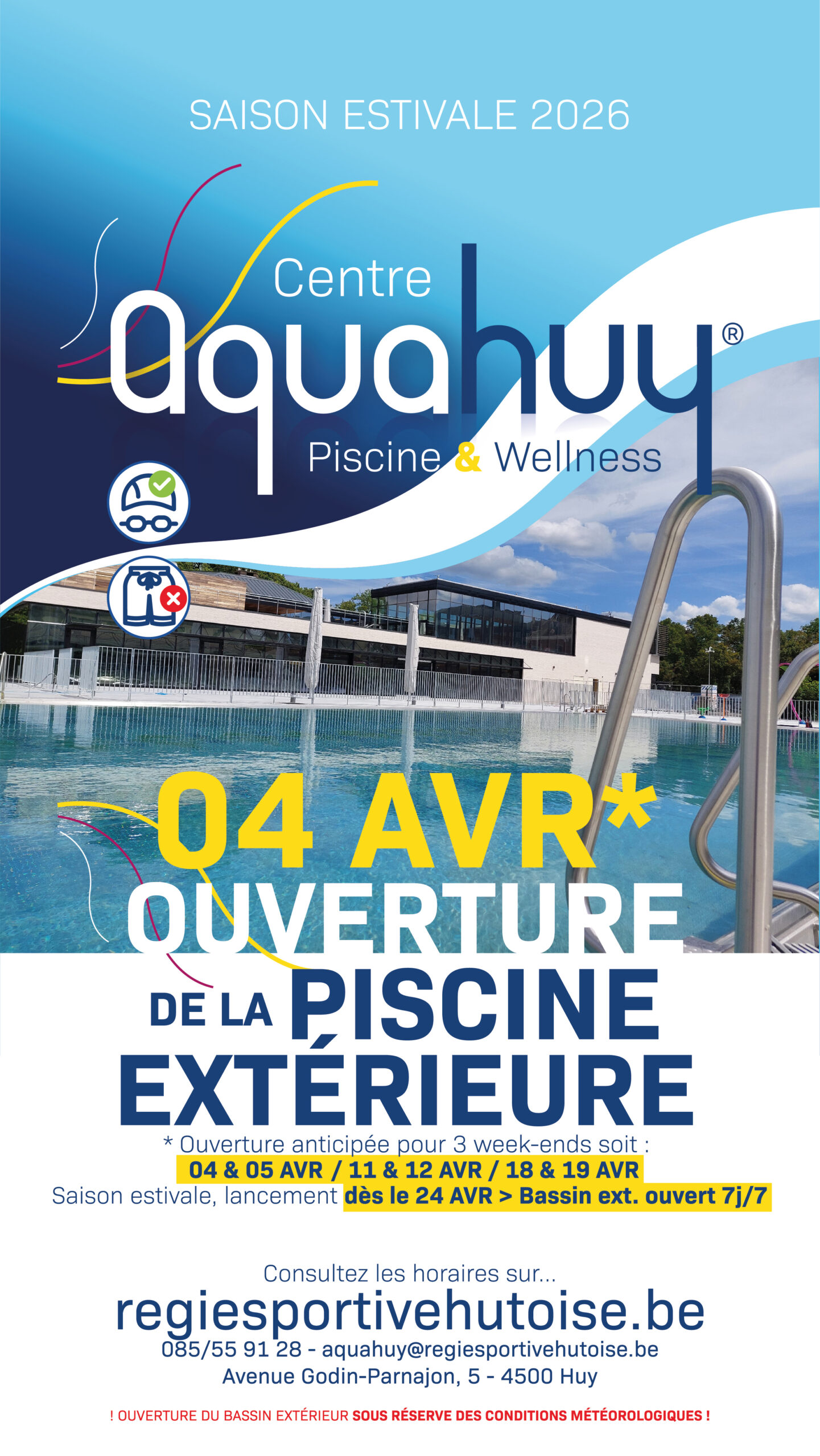 085/55 91 28 – aquahuy@regiesportivehutoise.be Avenue Godin-Parnajon, 5 – 4500 Huy